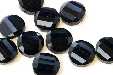 Black Faceted Glass Coin 14mm Bead (10 Pack) quantity