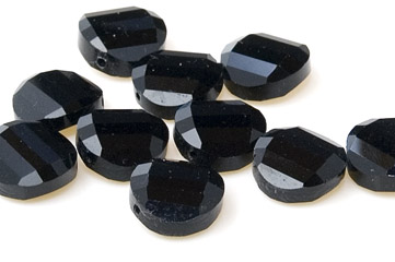 Black Faceted Glass Coin 14mm Bead (10 Pack)