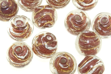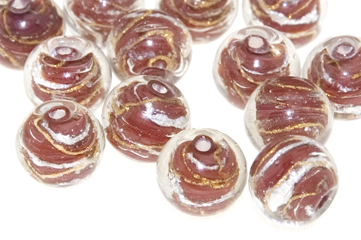 Dark Red With Gold And White Round Bead (10 Pack) quantity