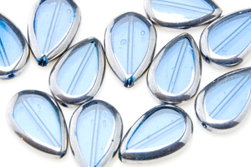 Transparent Glass bead with silver edging, drilled through length. 12mm wide.