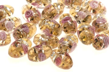 Gold and silver decorated with a pink flower. Size 16mm x 12mm.