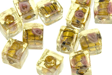 Gold Foil Decorated 10mm Cube Bead (20 Pack) quantity