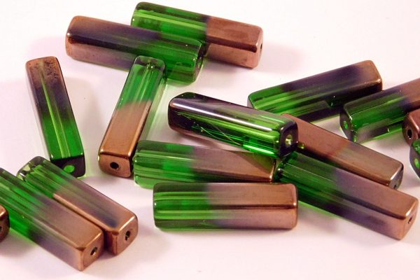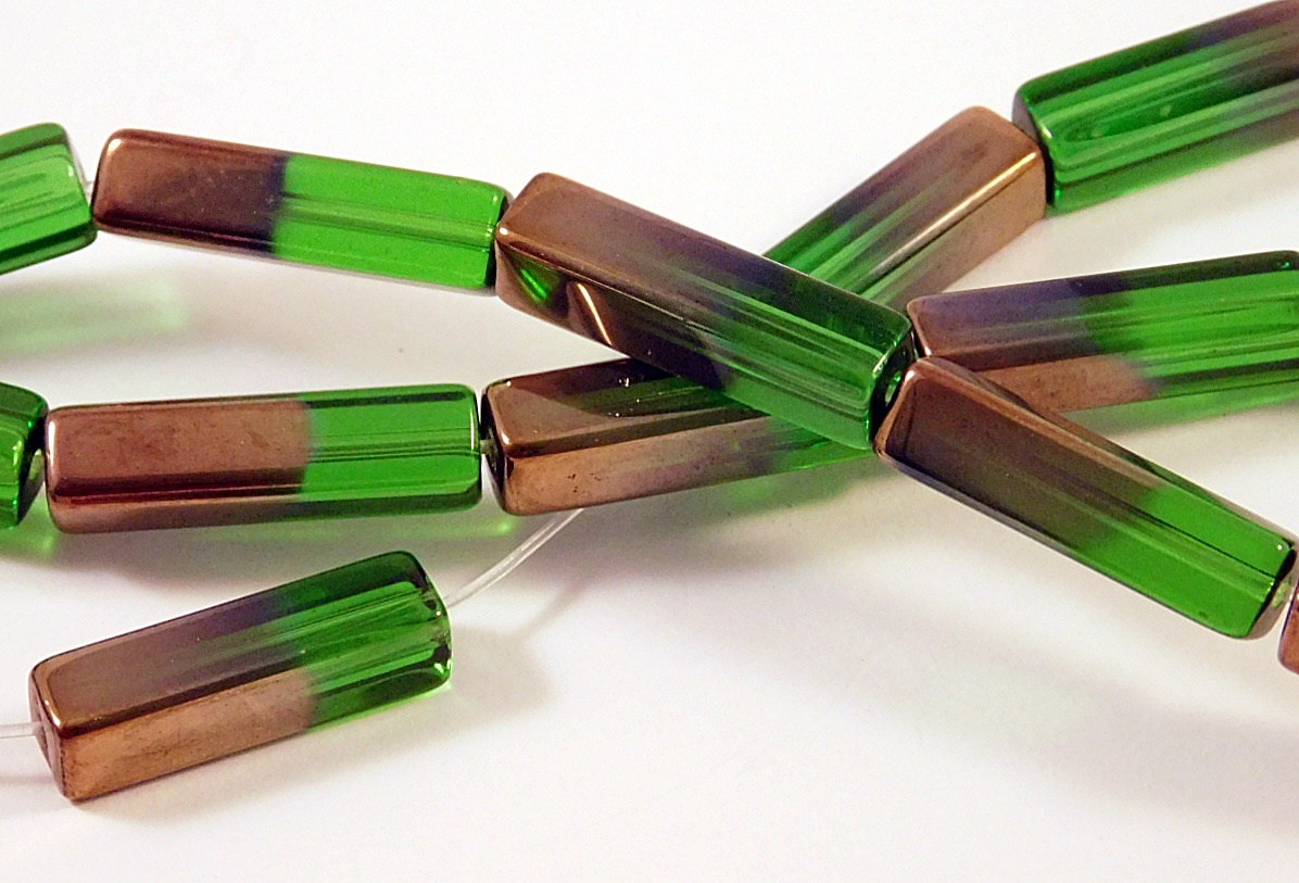 Square glass tubes 20mm long by 4mm wide, green with half dipped in gold.
