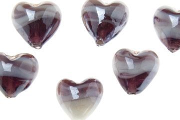Purple stripes on a white background. Random designs make these beads indivudual. NOW 5 FOR PRICE OF 4.