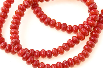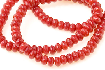 Solid red rondelle 3mm diameter by 2.5mm deep. String of Approx. 160 beads, 16 inches