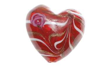 Puffed heart with painted stripes in white and gold, finished with a pink flower.