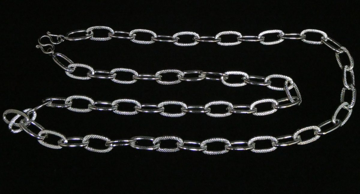 Finished Chain 24 inches/ 63 cm. Large oval 14mm links with patterned links. Suitable for necklaces or cut to bracelet lengths.