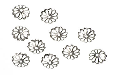 Dull Silver tone filigree bead caps. Size 10mm.
