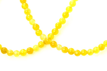 Round glass bead yellow with a hint of lime. String of approximately 123 beads.